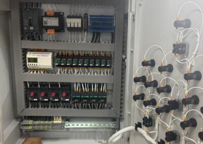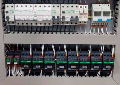 Diseño y montaje de tableros eléctricos, cuadros de distribución generales o secundarios y cuadros de control de motores, procesos industriales y domésticos.